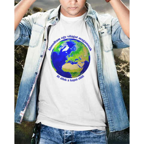 Feliratos póló, álmodtam egy világot. Álmodtam egy világot magamnak, itt állok a kapui előtt. Rendelj pólót motiváló szöveggel, magadnak vagy barátodnak akinek úgy érzed szüksége lehet rá, ajándékozd meg vele születésnapján. 100% pamut póló. Kiváló min