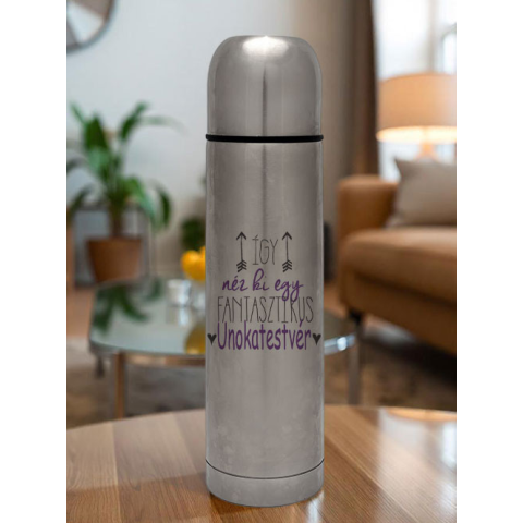 Feliratos termosz, fantasztikus unokatestvér. Így néz ki egy fantasztikus unokatestvér feliratos termosz. Tökéletes ajándék unokatestvéred születésnapjára, névnapjára vagy karácsonyra. Termoszaink rozsda mentes acél anyagból készültek, 500ml-es és 750ml-