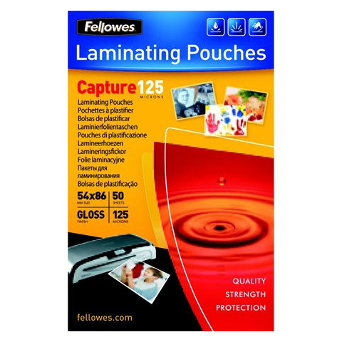1 kép FELLOWES Meleglamináló fólia, 125 mikron, 54x86 mm, fényes, 50 db, FELLOWES