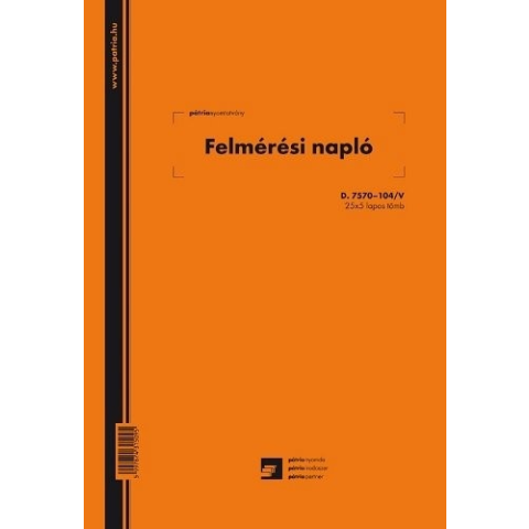 1 kép Felmérési napló 25x5 lapos tömb A/4 álló D.7570-104/V