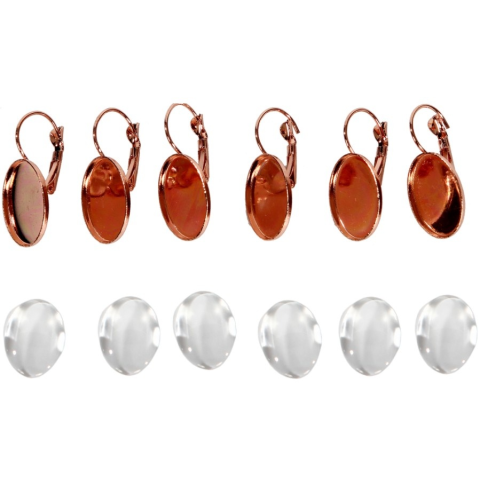 1 kép Fém fülbevaló alap lencsével ovális, 13 x 18 mm 1 pár - rózsaarany