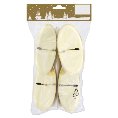 A kerek, 10 cm átmérőjű, aranyszínű, 4 darabos fém gyertyatartó tökéletes választás mindazok számára, akik stílusos és ünnepi hangulatot szeretnének teremteni. A csillogó aranyszínű árnyalat minden ünnepi asztalnak különleges hangulatot kölcsönöz. Gyertyái biztos megtartása A rajtuk lévő tűknek köszönhetően a gyertyatartók könnyen az adventi koszorúra vagy más dekorációkra rögzíthetők. Így biztos lehet benne, hogy gyertyái mindig biztonságosan és