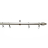 Fémből készült garnitúra, kompletten végzárókkal, tartókonzolokkal, rögzítő elemekkel, karikákkal, függönyhoroggal. Típus: karnisgarnitúra, hossz: 240 cm, átmérő: 16 mm, anyag: fém, szín: króm, tömeg: 1,1 kg, magasság: 245 cm, szélesség: 8,0 cm, mélység: 4,0 cm.