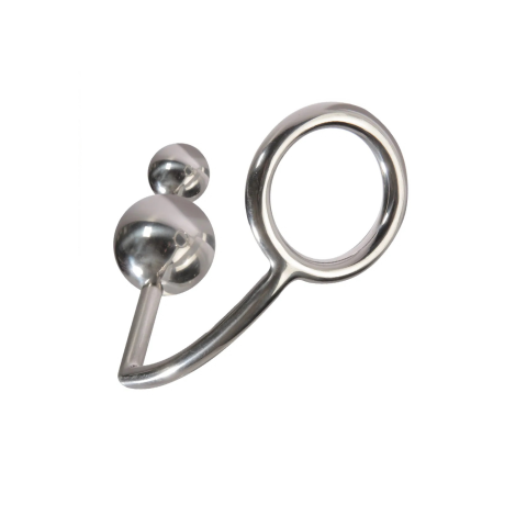 Fém péniszgyűrű dupla anál golyóval.Anyaga:rozsdamentes acélA golyók átmérője :2,5cm és 3,5cm.