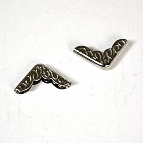 Fém sarokdísz, ezüst színű, lapos. Mérete: 16x16 mm dekorációs kellék árgrafikon