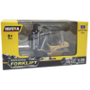 Szállíts nehéz és törékeny árut a villás targoncával! Az 1:50 méretarányú Fém targonca egy fémből és műanyagból készült, gázos meghajtású emelőgép, amit főleg kültéri raktárakban lehet használni.