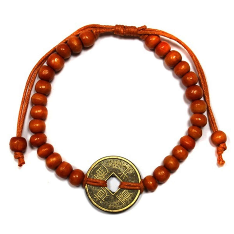 A Feng-Shui Szerencse Karkötő - Narancs színben, fa gyöngyből és szerencsehozó éremből készül. A távol keleti, főleg a kínai érmek rendkívül közkedveltek, anno a kínai császárok is használták ezeket a pénzügyek javításához, a
