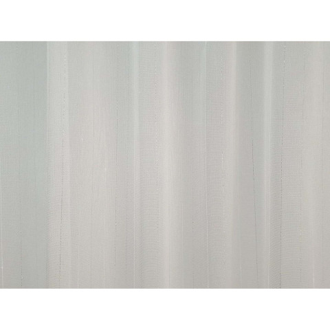 Fényáteresztő függöny, melyet a függőleges ezüstszálak teszik ünnepélyessé. Összetétele poliészter. A függönyt az áruházban az Ön által kívánt méretre vágják.