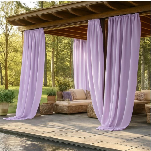 Fényáteresztő függöny lila 2 db 132x215 QB1096473-l132215Méret: 132 x 215 cm ( 2x) Szín: világos lilaEz a stílusos, világos színű függöny ideális választás pergolákhoz, teraszokhoz vagy kerti pihenőhelyekhez. A vastag, mégis lágy esésű textil hatékonyan árnyékol, miközben meghitt, elegáns légkört teremt a szabadtéri térben.Főbb jellemzők:Anyag: UV-álló, időjárásálló szövet, amely ellenáll a napsütésnek és az enyhe csapadéknakSzín: Klasszikus vilá