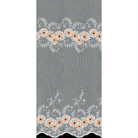 Fényáteresztő függönyanyag hímzett virágos barack 175 cm magas méteráru lakástextília termékleírás