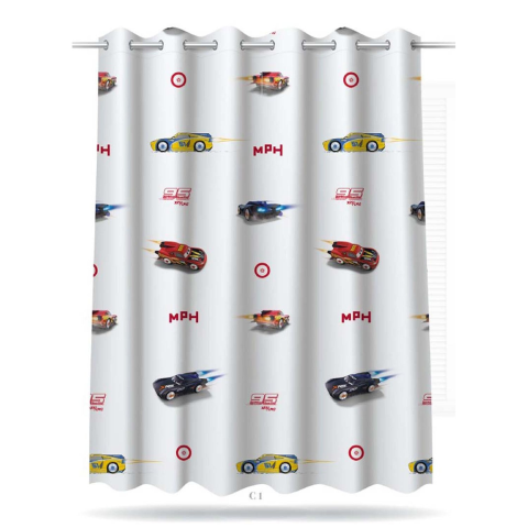 Gyerekmintás, nyomott Voile, autós (Cars) mintával, mint fő motívummal, ólomzsinórral. A függönyt az áruházban az Ön által kívánt méretre vágják.