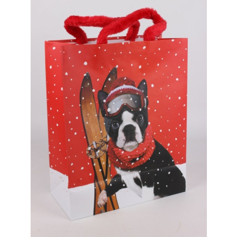 1 kép Fényes, bulldog mintás papírtasak, plüss fülekkel