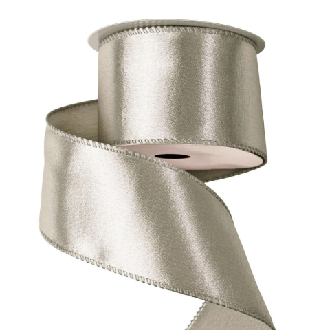 Fényes szatén szalag drótos szegéllyel 63mm x 5m - Ezüst