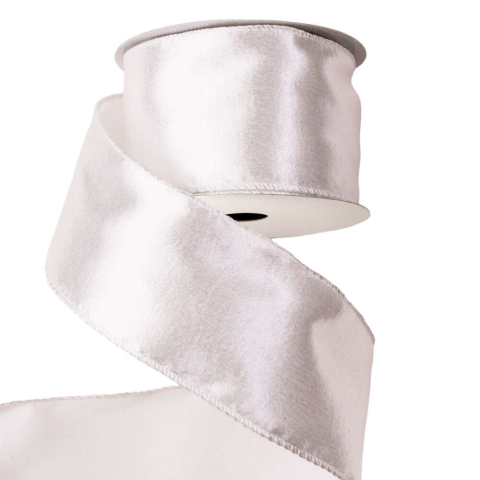 Fényes szatén szalag drótos szegéllyel 63mm x 5m - Fehér