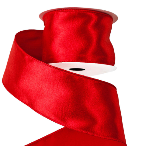 Fényes szatén szalag drótos szegéllyel 63mm x 5m - Piros