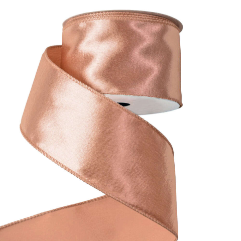 Fényes szatén szalag drótos szegéllyel 63mm x 5m - Rose gold