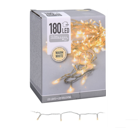Fényfüzér 180 LED-es transzparens időzítős programos adapteres meleg