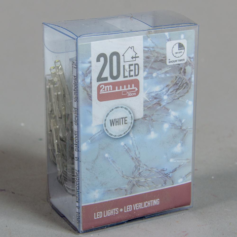 Fényfüzér 20 LED-es időzítős elemes (elem nélkül) hideg