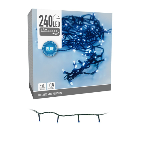 Fényfüzér 240 LED-es programos időzítős adapters kék
