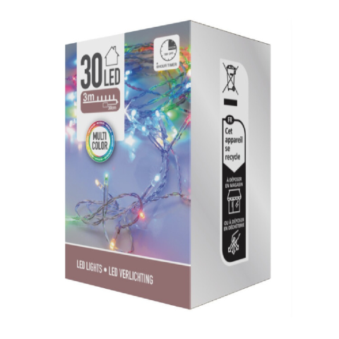 Fényfüzér 30 LED-es timeres elemes (elem nélkül) multi