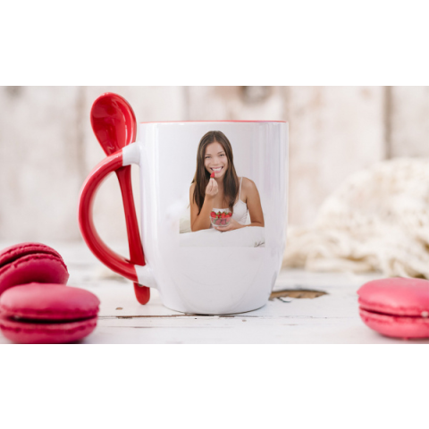 Fényképes Bögre - Kanalas bögre - Piros - 3dl