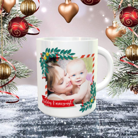 Karácsonyi bögre fotóval, Boldog Karácsonyt felirattal. Fényképes bögre karácsonyra szülőknek, nagyszülőknek. Kérd díszdobozban, válassz bögre színt, kosárba helyezés előtt töltsd fel saját fotódat és lepd meg szeretteidet, barátaidat egy szuper saját fot