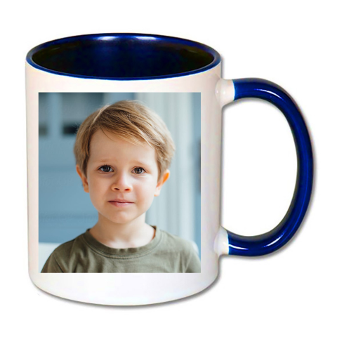Fényképes Bögre, kék füllel és belsővel, egy vagy két fényképpel bögrék, csészék termékleírás