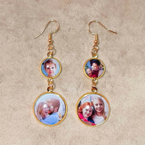 1 kép Fényképes fülbevaló két képpel - akár négy képpel -, acélból, arany színben