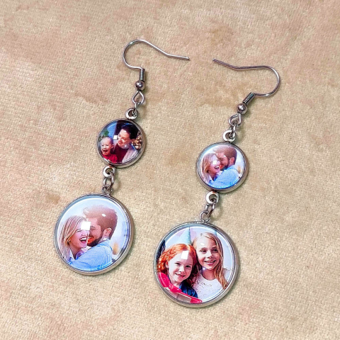 1 kép Fényképes fülbevaló két képpel - akár négy képpel -, acélból, ezüst színben