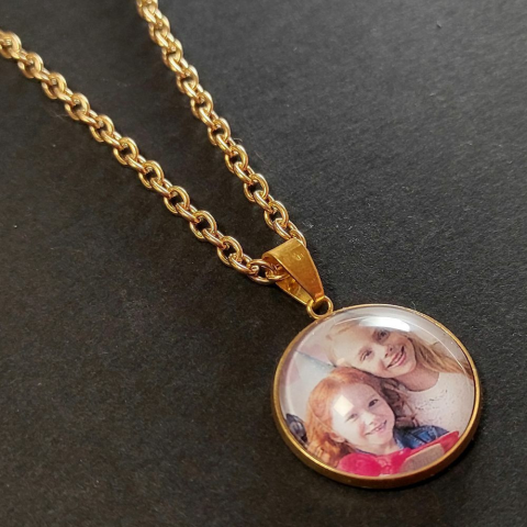 Teljes Fényképes gyerek medál (20mm) acél nyaklánccal, arany színben (márkadobozban) termékleírás