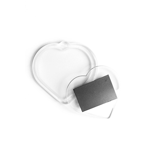 A hűtőmágnes fénykép mérete: 43x41mm, szív forma Fényképes hűtőmágnes készítéséhez fejlesztve, mely műanyag (víztiszta, átlátszó) kivitelben rendelhető, hátoldalon mágnesfólia biztosítja a tapadást.