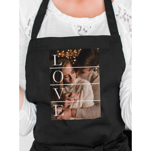 Fényképes kötény szerelmednek, Love. Szerelmes ajándék barátod, barátnőd születésnapjára, névnapjára, de akár Valentin napra is tökéletes meglepetés. Egyedi meglepetés kedvenc közös fotótokkal LOVE felirattal, kedves meglepetés annak, akit a legjobban sze