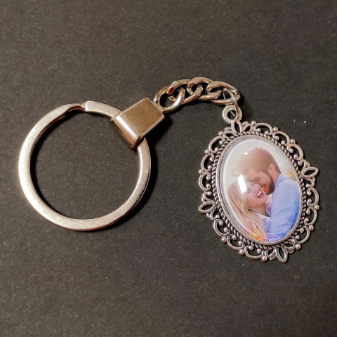 1 kép Fényképes kulcstartó ovális tibeti ezüst foglalatban (40 mm), dobozzal