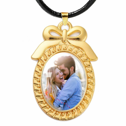 1 kép Fényképes medál bőr nyaklánccal, ovális masnis medállal (márkadobozzal)