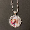 1 kép Fényképes nyaklánc acél box chain lánccal, strasszal kirakott medállal (márkadobozzal)