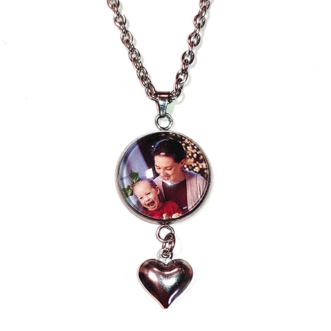 1 kép Fényképes nyaklánc domború szívvel, rozsdamentes acélból, ezüst szín