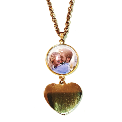 1 kép Fényképes nyaklánc nagy feliratozható tüköracél szívvel, arany szín