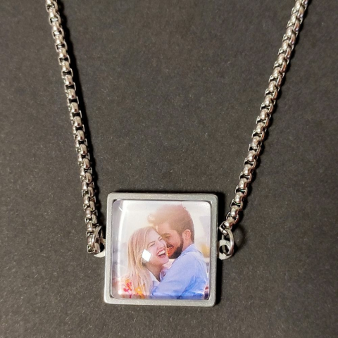 1 kép Fényképes nyaklánc rozsdamentes acél box chain lánccal, négyzet alakú medállal (márkadobozzal)