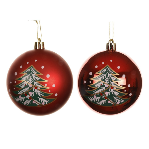 1 kép Fenyő mintás műanyag gömb karácsony piros 8cm