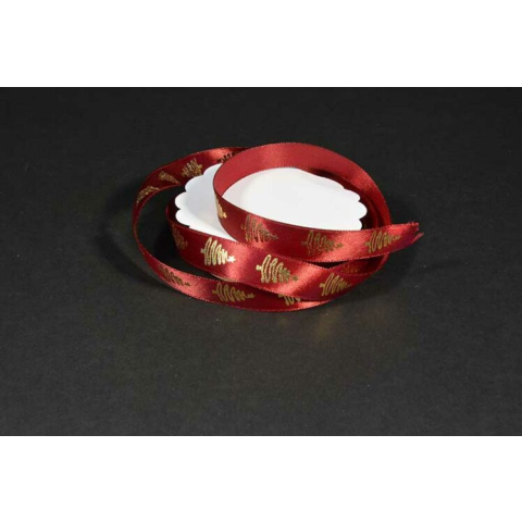 1 kép Fenyőfa mintás szatén szalag 16mmx20m bordó