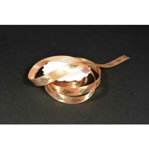 1 kép Fenyőfa mintás szatén szalag 16mmx20m bronzos arany