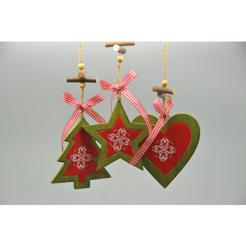 Fenyőfadísz akasztós fa 29cm barna-piros-zöld