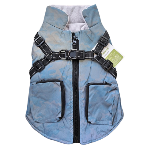Fényvisszaverő Kutyakabát beépített kutyahámmal és zsebekkel, kék, S-es