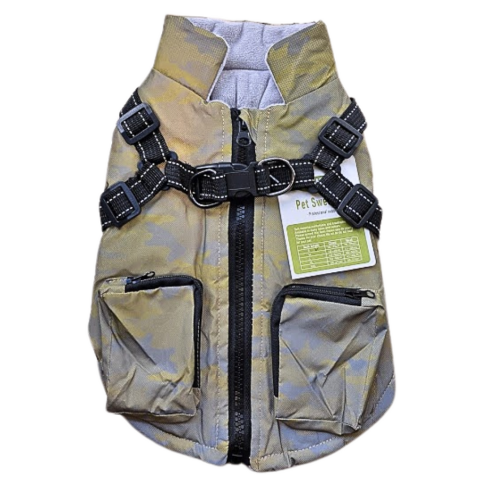 1 kép Fényvisszaverő Kutyakabát beépített kutyahámmal és zsebekkel, sárga, XL-es