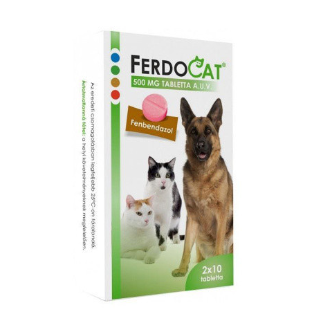Kiszerelés: 20db/doboz A Ferdocat féreghajtó Tabletta A.U.V. a célállatokban az alább felsorolt parazitafajok által okozott fertőzések kezelésére szolgál: orsóférgek, kampósférgek, ostorféreg, tüdőféreg, Protozoon: Giardia fajok. Vemhes szukákban a vemhe