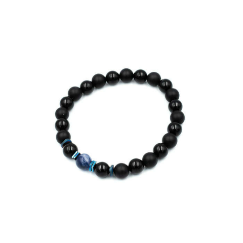 Teljes Férfi ásvány karkötő matt és fényes onixból hematittal és szodalittal termékleírás