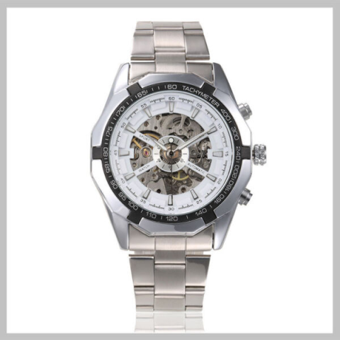 2 kép Férfi Skeleton karóra ezüst - holm9724