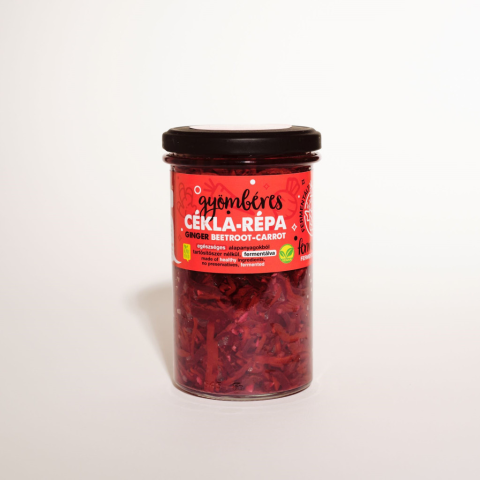Fermentini fermentált gyömbéres cékla-répa 450 g A fermentált Gyömbéres cékla-répát a céklarajongóknak ajánljuk elsősorban. Roppanós, vékony cékla és sárgarépa- csíkok, a gyömbér friss ízével keverve. A cékla sárgarépával és gyömbérrel való keverése ha