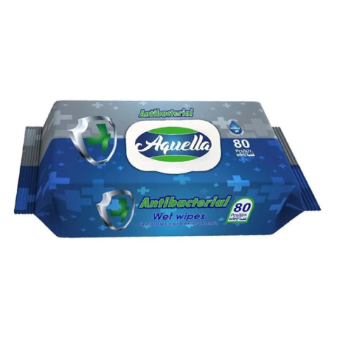 Fertőtlenítő törlőkendő AQUELLA antibakteriális 80 db-os - 13.00523 - Fertőtlenítők -