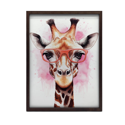 Szemüveges Rózsaszín Zsiráf Vászonkép: Vidám Dekoráció Otthonába 🦒💖 Ez a gyönyörű vászonkép egy szemüveges rózsaszín zsiráfot ábrázol, vidám és egyedi hangulatot teremtve otthonában. Prémium minőségű vászonra nyomtatva, hordágykeretre feszítve, így...